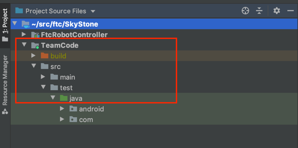 and then add a directory hierarchy “test/java” rooted in your TeamCode “src” folder, where you will need to add your unit test classes so that Android Studio will automatically recognize them as test code: